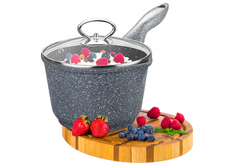 БЫЛО 1778 руб.Ковш 1,5 л "Мрамор" С КРЫШКОЙ ф16, с носиком, н/р, 32,5*17,8*17 см