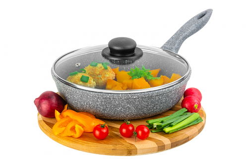 БЫЛО 2155 руб!! Сковорода глубокая 24 см ГАРМОНИЯ ВКУСА "Серый мрамор" С КРЫШКОЙ ф24, н/р, 43,5*25*11,5 см