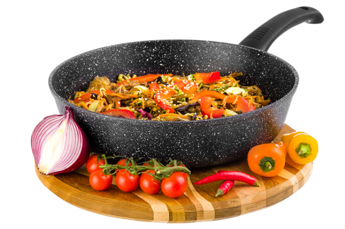 БЫЛО 2291 руб!! Сковорода глубокая 28 см ГАРМОНИЯ ВКУСА "Черный мрамор" ИНДУКЦИЯ, С КР. ф28, н/р, 48*29*12,5 см