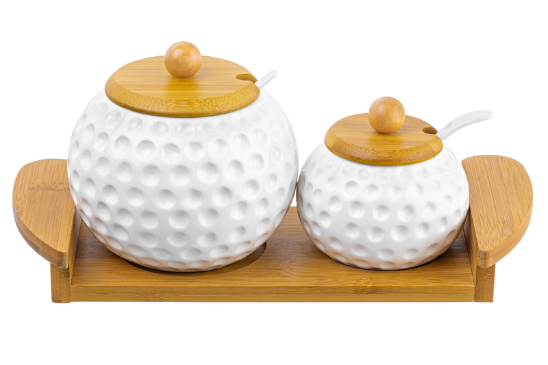 БЫЛО 995 руб!! Набор - сахарница 550 мл + солонка 170 мл 27*11,5*12 см "Сфера" + 2 ложки на дер. подст.