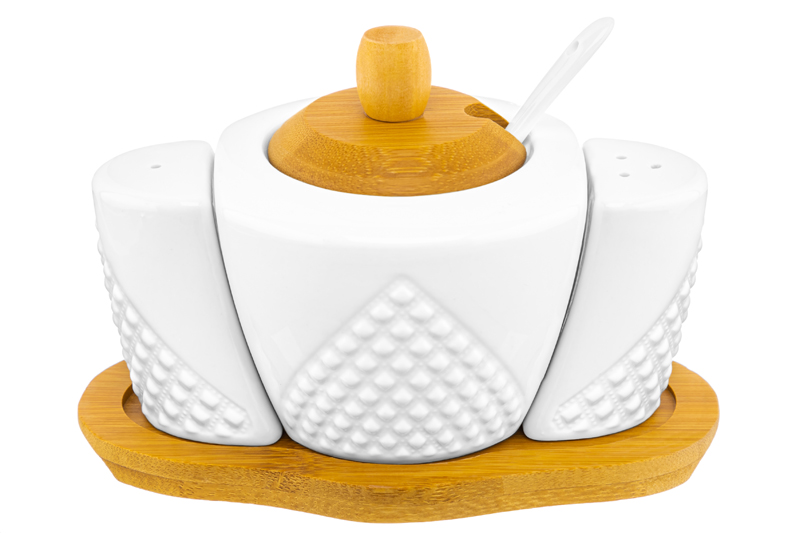 БЫЛО 729 руб!! Набор - сахарница 300 мл 16*10*11 см "Ромбики" с ложкой + солонка + перечница на дер. подст.