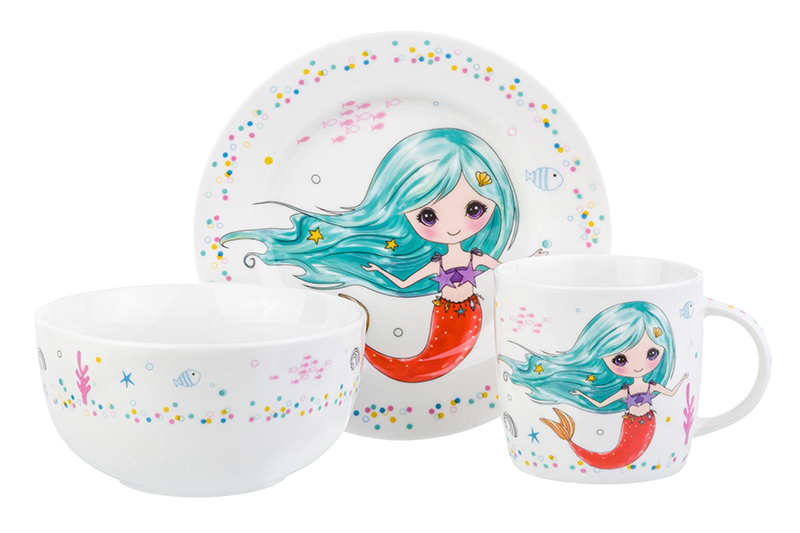 БЫЛО 873 руб!! Набор 3 пр. - кружка, миска, тарелка "Русалка с голубыми волосами"