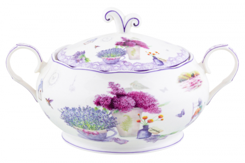 БЫЛО 1638 руб!! Пельменница - супница 30*22,5*18 см 2,6 л "Лаванда" + крышка NEW BONE CHINA