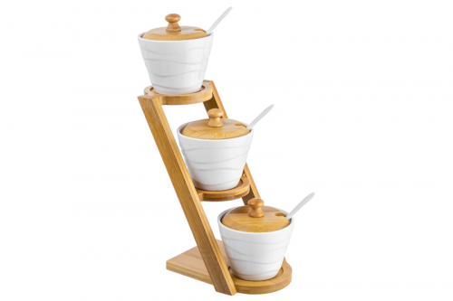 БЫЛО 1249 руб!! Набор 3 банок д/хранения 150 мл 13,5*11*30 см "Айсберг волны" на дер. подставке (3 этажа) + ложки