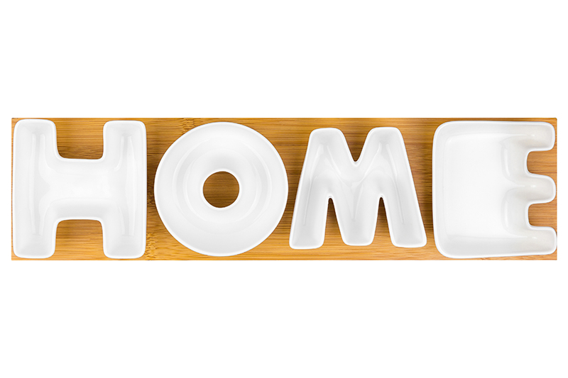 БЫЛО 1041 руб!! Набор 4 сервировочных блюд 43*11*4 см "HOME" на деревянной подставке