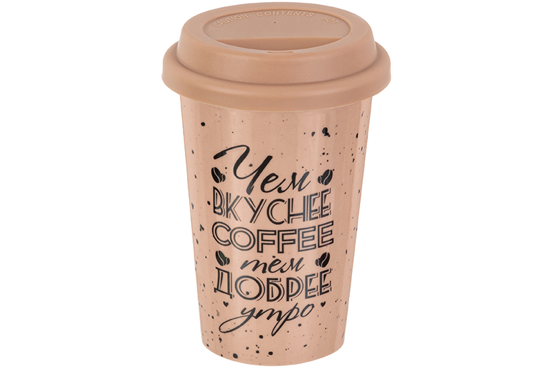 БЫЛО 497 руб! Стакан 400 мл 9,5*9,5*14 см "Бежевый" + силиконовая крышка, NEW BONE CHINA
