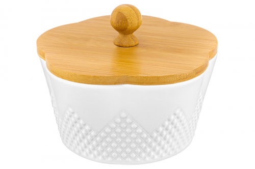 БЫЛО 778 руб! Банка для сыпучих продуктов 850 мл 14*12*11 см "Белая" + откидная бамбук.крышка, керамика