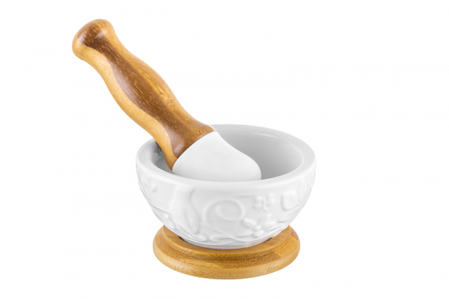 БЫЛО 423 руб! Ступка 9*9*5,5 см 100 мл "Птички на ветке" + пестик на дер. подставке