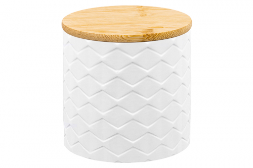 БЫЛО 417 руб! Банка д/хранения 650 мл 11*11*11 см "Аргайл" + бамбук.крышка, белый перламутр, доломит