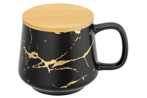 БЫЛО 720 руб! Кружка 400 мл 13,5*10*9 см "Золотой мрамор на черном" с деревянной крышкой