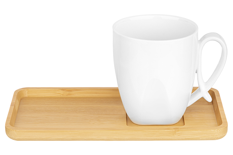 БЫЛО 444 руб! Чашка 300 мл 11*8,3*9,5 см "Айсберг" с бамбуковым блюдцем для десерта 21*10,5*1,5 см
