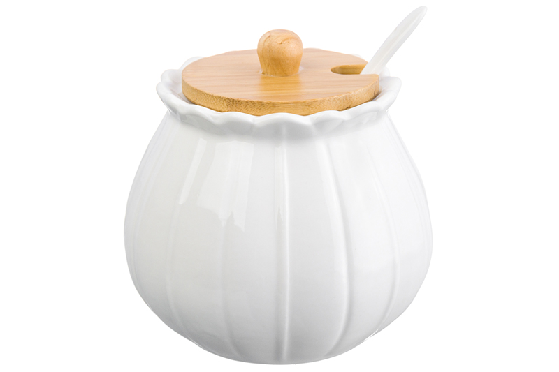 БЫЛО 518 руб! Сахарница 400 мл 15,3*11,5*10,5 см "Айсберг" + ложка + крышка на дер. подставке