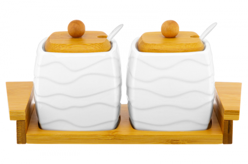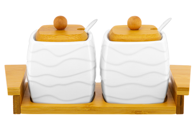 БЫЛО 1004 руб! Набор 2 сахарниц 400 мл 24,5*10*11 см "Айсберг волны" + ложки + дер. крышки на дер. подставке