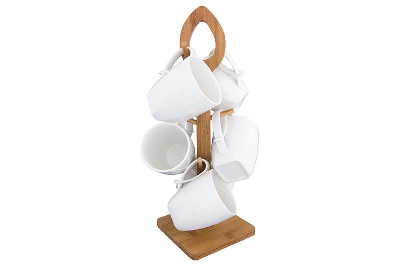 БЫЛО 2133 руб! Набор 6 кружек 300 мл 16*18*38 см "Айсберг" на дерев. подставке с ручкой