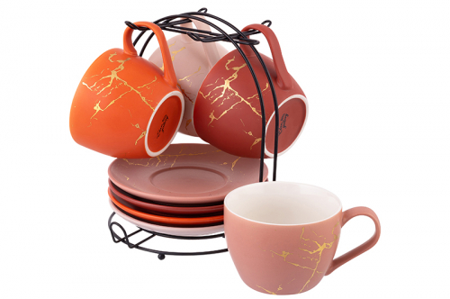 БЫЛО 2447 руб! Чайный набор 8 пр. 400 мл 20*19,5*22 см "Золотой мрамор" на металлической подставке