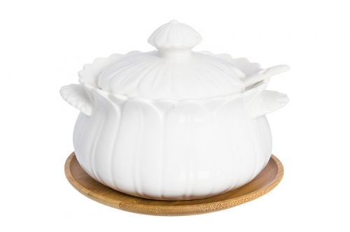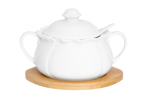 БЫЛО 559 руб! Сахарница 400 мл 13*11*10 см "Цветок" + ложка + дерев. подставка