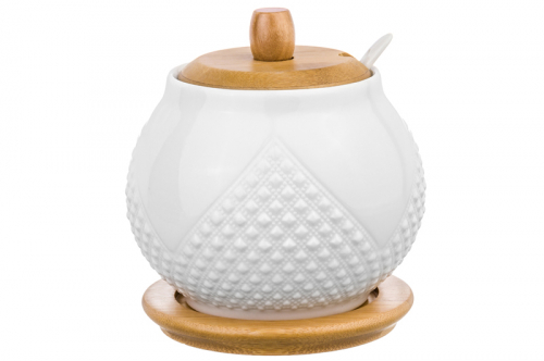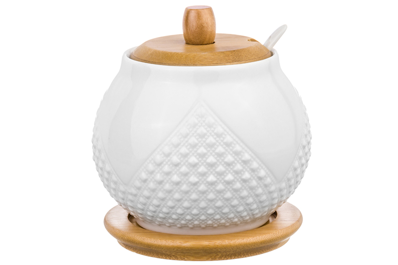 БЫЛО 455 руб! Сахарница 620 мл 11*11*12 см "Ромбики" + ложка + дер. крышка на дер. подставке