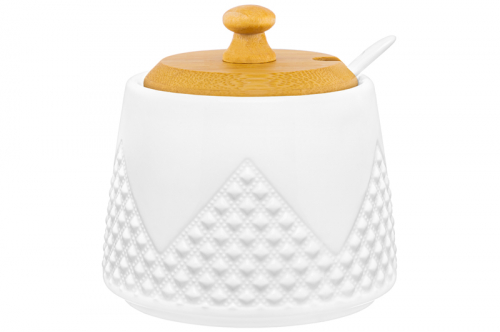 БЫЛО 408 руб! Сахарница 350 мл 9,7*9,7*10,5 см "Ромбики" + ложка + дер. крышка.