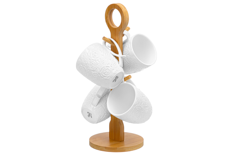БЫЛО 1271 руб! Набор 4 кружек 300 мл 19*19*34 см "Розы" на дерев. подставке с ручкой 13*13*34 см