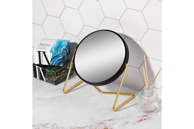 БЫЛО 756 руб! Зеркало двустороннее на подставке 16,5*10,5*18,5 см "Черное"