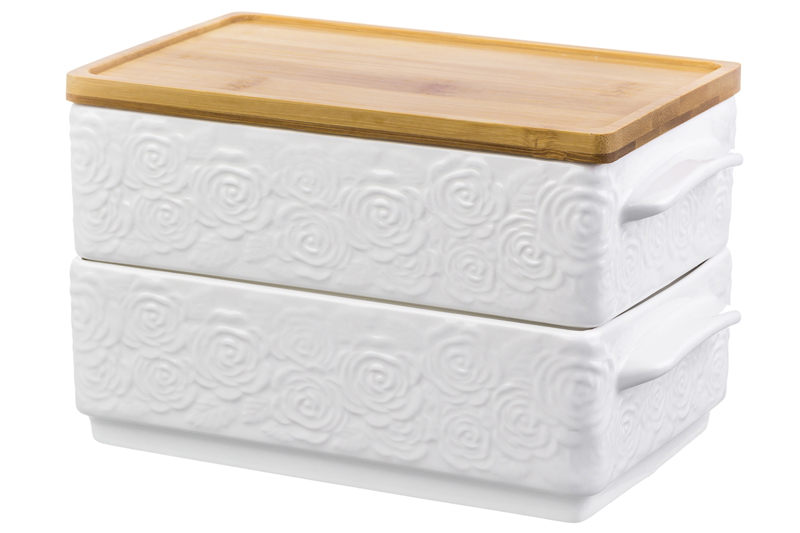 БЫЛО 1665 руб! Набор 2 блюд д/холодца 800 мл 20,5*12,5*11,5 см "Розы" + бамбуковая крышка