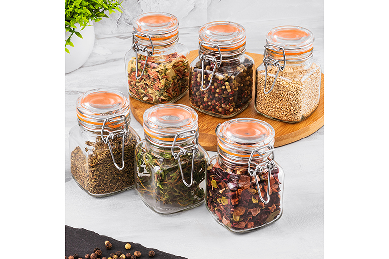 Набор 6 банок д/хранения 100 мл 5*5*8 см "Glaskraft" с крышками с металл.зажим. и сил.уплот.,стекло