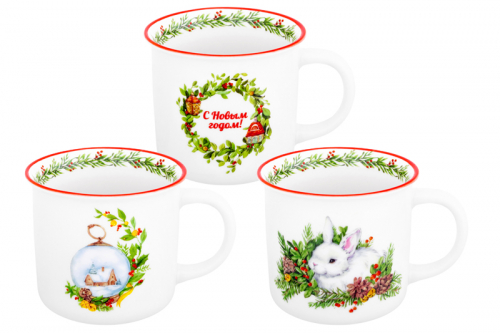 БЫЛО 841 руб! Набор 3 кружек 355 мл 13*9,5*8,8 см "Новогодняя сказка" с эксклюзивным дизайном NEW BONE CHINA
