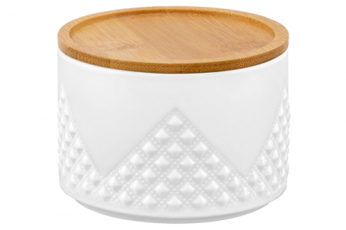 **БЫЛО264 руб! Банка д/хранения 250 мл 9,3*9,3*7 см "Ромбики" + дер. крышка-подставка с крыш. с сил. упл.