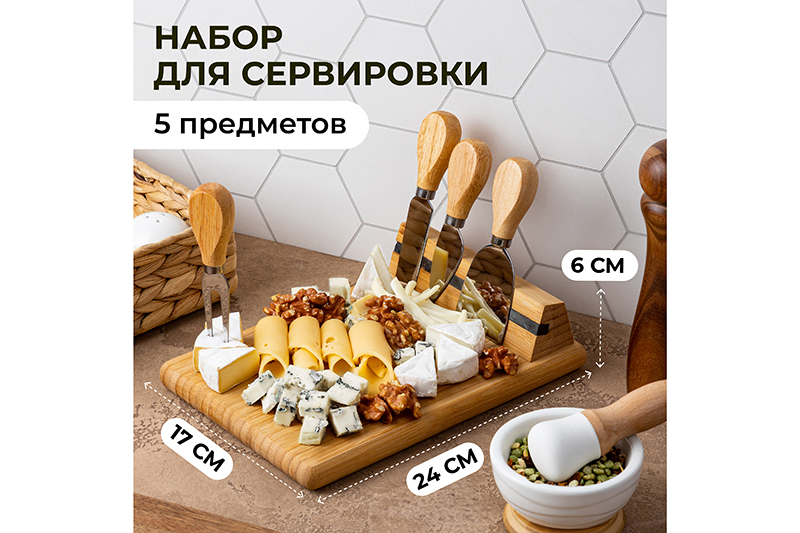 БЫЛО 1582 руб! Набор 5 пр. для сервировки сыра 24*17*6 см с магнитным держателем