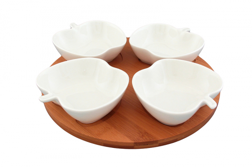 БЫЛО 886 руб!!! "Менажница 25*25*6 см "Яблоко" крутящ 4 секции на дер подставке"