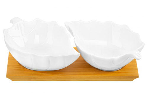 БЫЛО 475 руб! Блюдо сервировочное 2 пр. 20*12*5 см 160 мл "Лепестки" на дер. подставке