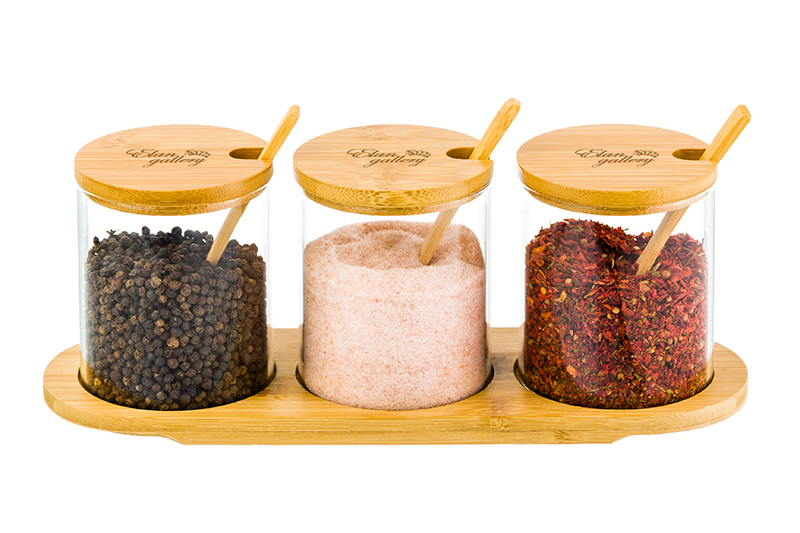 БЫЛО 1136 руб! Набор 3 банок д/специй 300 мл 29*9,5*10,5 см "Crystal glass" + бамб.крышка+ложка+бамб.подставка