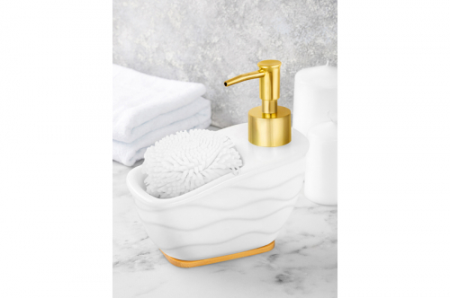 БЫЛО 810 руб! Диспенсер 15,5*8,5*15,5 см 500 мл "Айсберг волны" + губка на дер. подставке