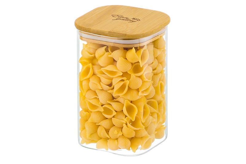 БЫЛО 606 руб. Банка д/хранения 1,1 л 10*10*15,5 см "Crystal glass" + бамбуков.крышка с силикон. прокладкой, стекло