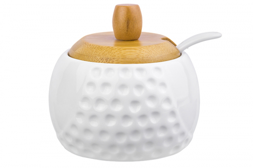 БЫЛО 415 руб! Сахарница 350 мл 11,5*10,5*10,5 см "Айсберг" + ложка + дер. крышка на дер. подставке
