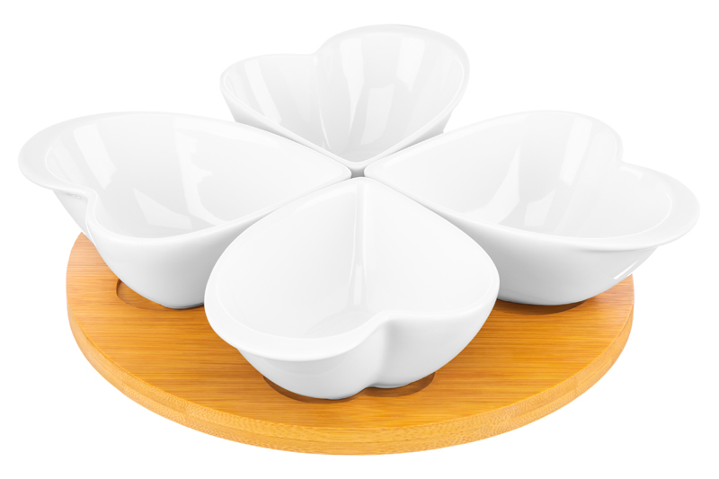 БЫЛО 1179 руб! Менажница 27*27*7 см "Айсберг" сердце крутящ. 4 секции на дерев. подставке