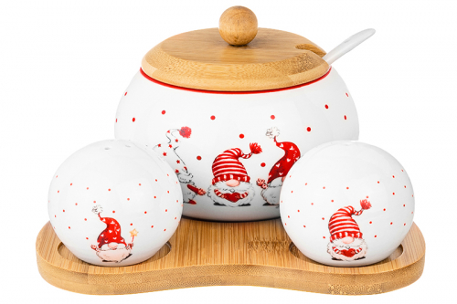БЫЛО 1144 руб! Набор - сахарница 440 мл 16*17*8,5 см "Весёлые гномики" с ложкой + солонка+ перечница дер.под,