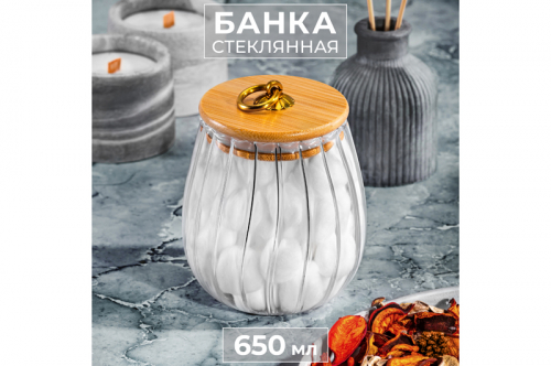 Банка стеклянная 650 мл 10,5*10,5*13 см с деревянной крышкой с силиконовым уплотнителем