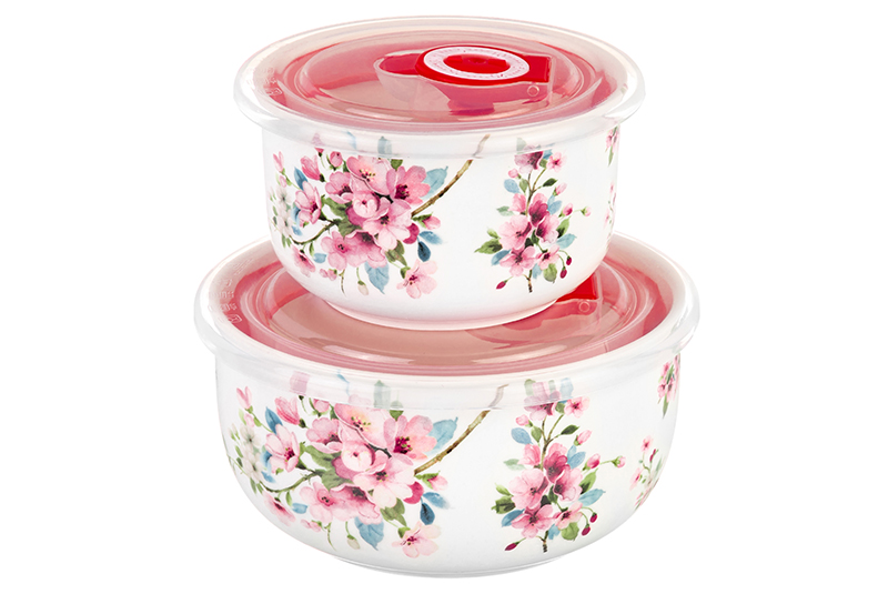 БЫЛО 672 руб! Набор 2 салатников - 13*13*6,5 см 560 мл+10,5*10,5*6 см 260 мл "Яблоневый цвет на белом" без зол.к