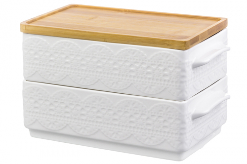 БЫЛО 1665 руб! Набор 2 блюд д/холодца 800 мл 20,5*12,5*11,5 см "Кружево" + бамбуковая крышка