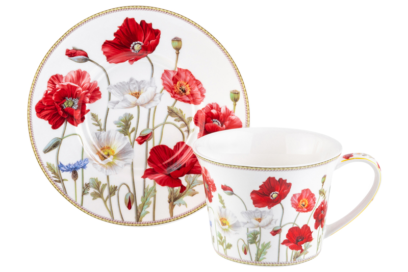БЫЛО 783 руб! Чайн. пара 2 пр. 270 мл 12,5*9,5*7 см "Маки" NEW BONE CHINA