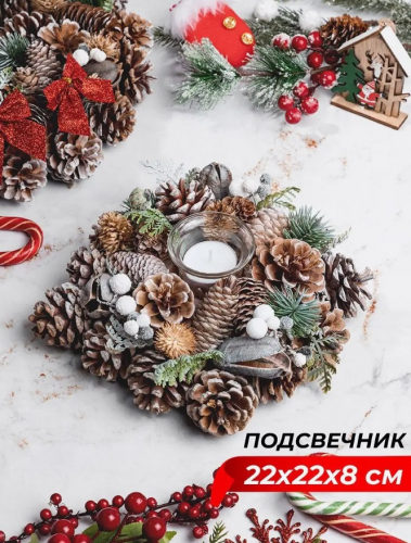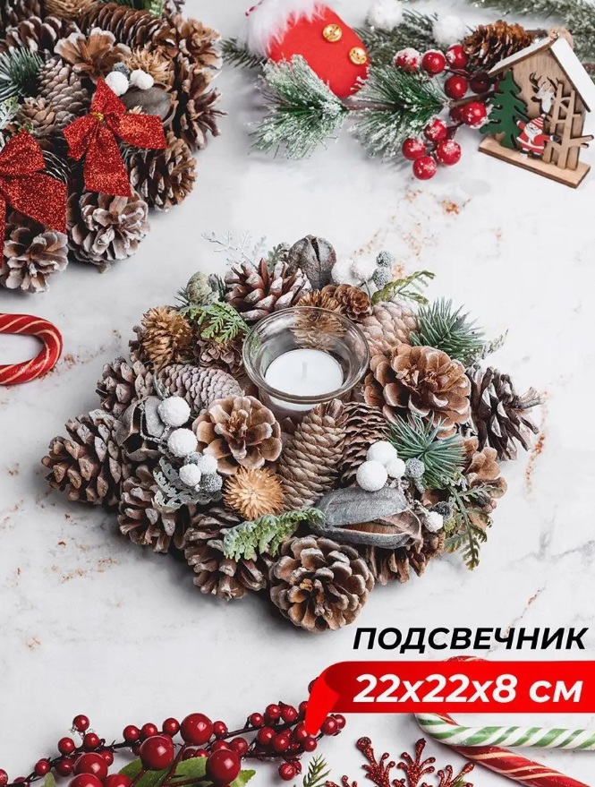 БЫЛО 982р! Новогоднее украшение подсвечник 23*23*11 см