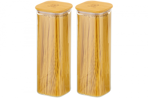 БЫЛО 1647 руб! Набор 2 банок д/хранения 2 л 10*10*28,5 см "Crystal glass" + бамбук. крыш. с силик. проклад, стекло