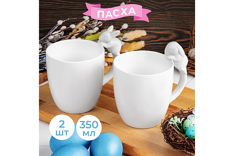 БЫЛО 768 руб! Набор 2 кружек 350 мл 12*8,5*11,5 см "Кролики"