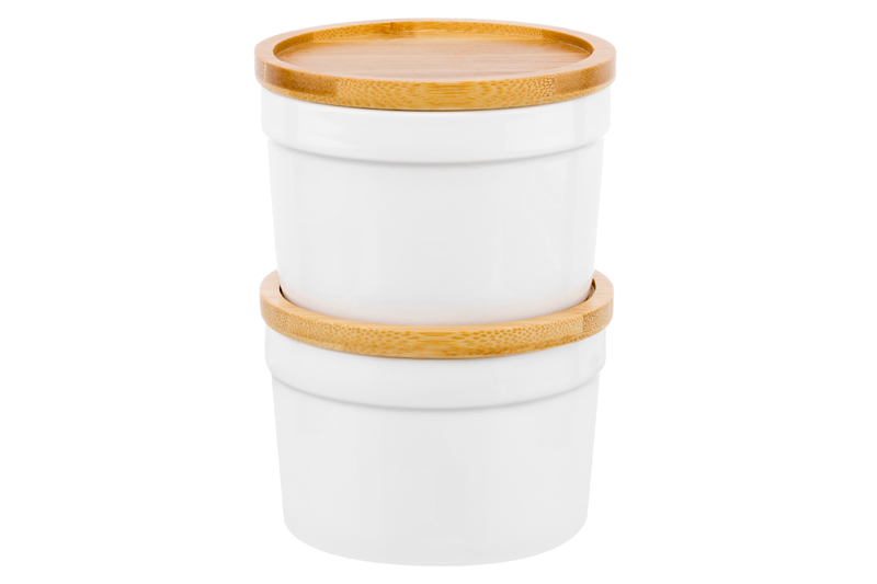 БЫЛО 775 руб! Набор 2 банок д/хранения и запекания 250 мл 9,3*9,3*7 см "Айсберг" + деревянная крышка-подставка
