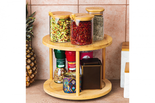 БЫЛО 1682 руб! Подставка 2-уровневая 24,5*24,5*19,5 см, многофункциональная, вращающаяся, бамбук