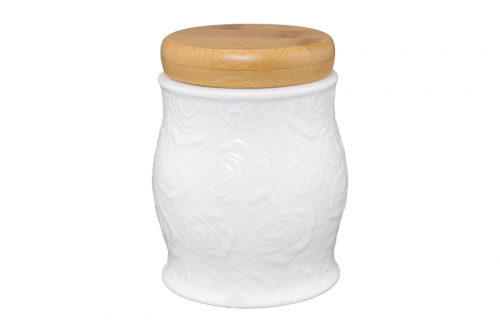 БЫЛО 535 руб! Банка д/сыпучих продуктов 10*10*12 см 575 мл "Белые розы" с дерев. крышкой с сил. упл.