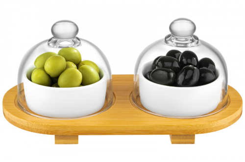 БЫЛО 900 руб! Набор 2 блюд 22*11*9,5 см "Айсберг" + стеклянные крышки + дер.подставка