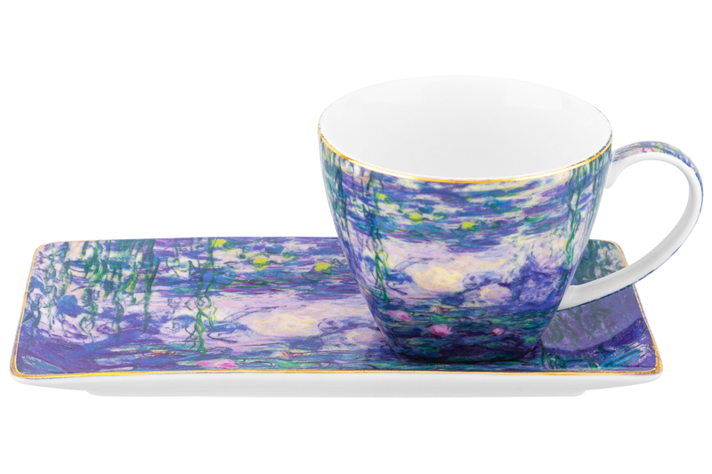 БЫЛО 974 руб! Чашка 250 мл с блюдцем для десерта 20*10*2 см "Водяные лилии"