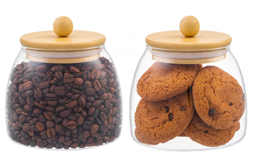 БЫЛО 1212 руб! Набор 2 банок д/хранения 700 мл 11,5*11,5*12 см "Crystal glass" + бамбук.крыш. с сил.проклад, стекло